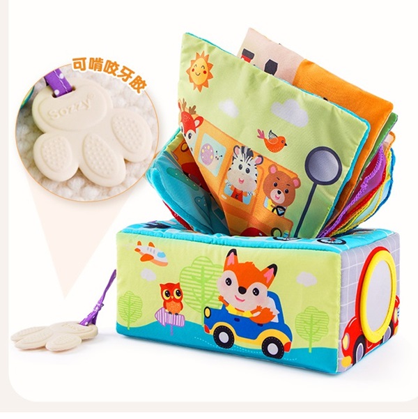đồ chơi hộp vải rút vận động tinh cảm xúc cho bé sozzy