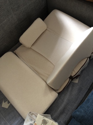 + Bước 3: Đặt toàn bộ người bé lên gối, chân của bé sẽ được đặt trên phần đệm gác chân ( đệm nhỏ)