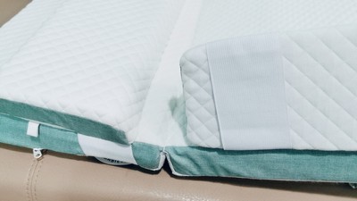 Vừa nằm vừa cho con bú quá tiện, chống trào ngược rất tốt. Phần lõi đệm nằm khá vững chắc, rất thích hợp cho các bé bị trào ngược nặng cần nằm thường xuyên trên gối.