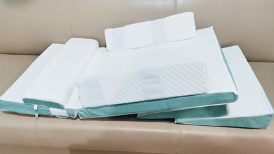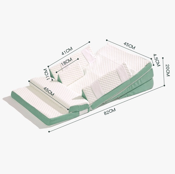 + Bộ sản phẩm gồm: 1 đệm nằm, 2 gối điều chỉnh độ nghiêng, 3 gối chặn ngang, 1 gối chặn chân, 1 túi xách.