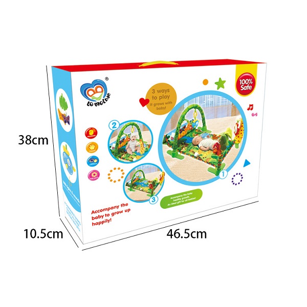 Thiết kế thảm có thanh đồ chơi và rất nhiều đồ chơi xung quanh
