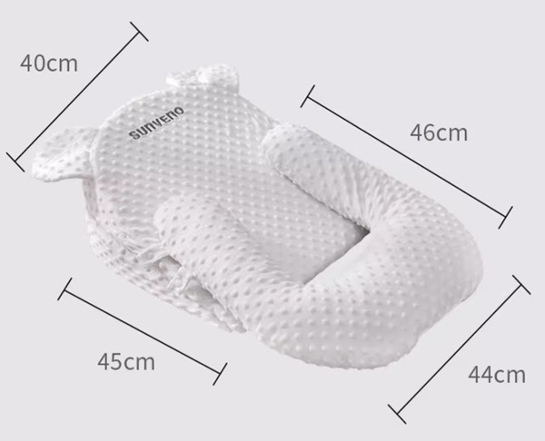 + Gối chống trào ngược tròn Sunveno: Gối được thiết kế nguyên khối giúp tăng khả năng hỗ trợ cơ thể trẻ, góc nghiêng 15 độ hoàn hảo cho trẻ sơ sinh. Gối được thiết kế hai mặt vải: Vải nhung 3D – vải lưới thoáng khí, để mẹ lựa chọn theo thời tiết hoặc sở thích của trẻ.